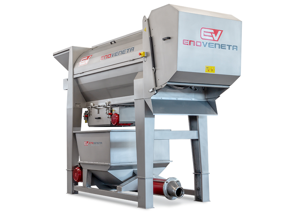The PPC-250 press have a capacity of 250 hectoliters and is complete of a PLC that can manage each production phase. The TOP-60 destemmer-crusher, with its mohno pump, have an hourly output of 60 ton/h.