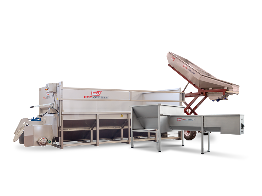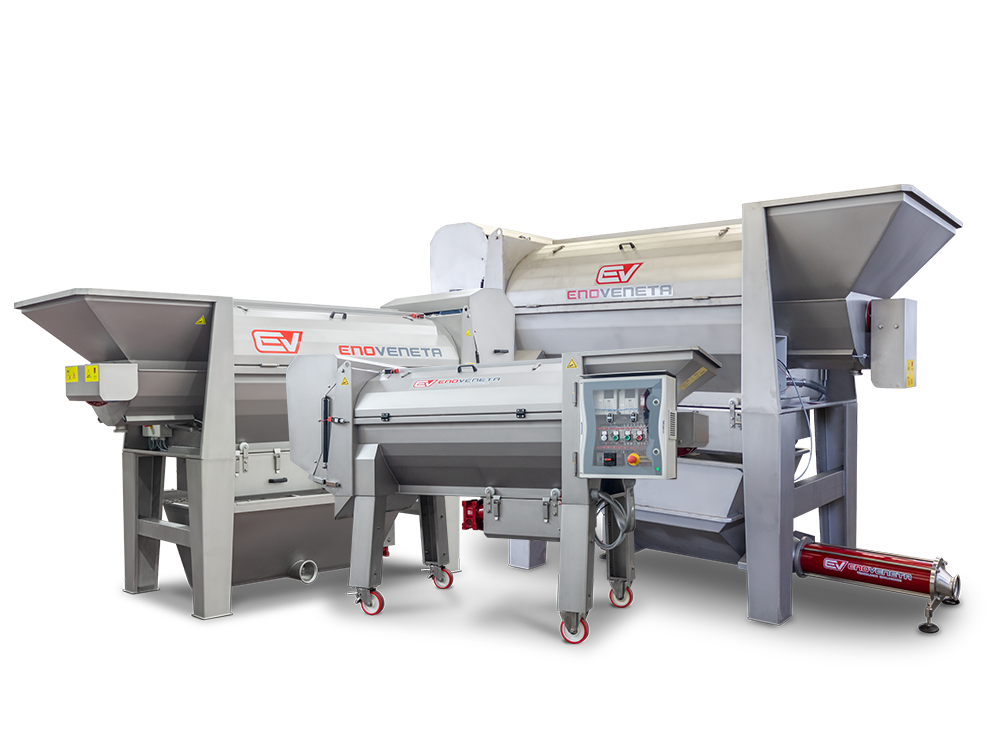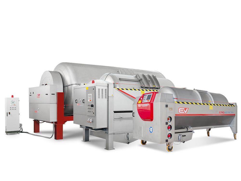 Pour la phase de pressurage Enoveneta propose une série de solutions technologiques qui vont des pressoirs hydrauliques aux pressoirs pneumatiques, à tambour ouvert et à tambour fermé. En outre, différents solutions sont également disponibles pour le transport du marc de raisin.