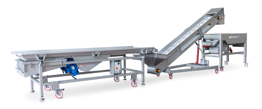 Enoveneta propose diverses solutions pour la réception des raisins, des chariots de vendanges en diverses versions aux trémies de convoyeuses sur mesure.