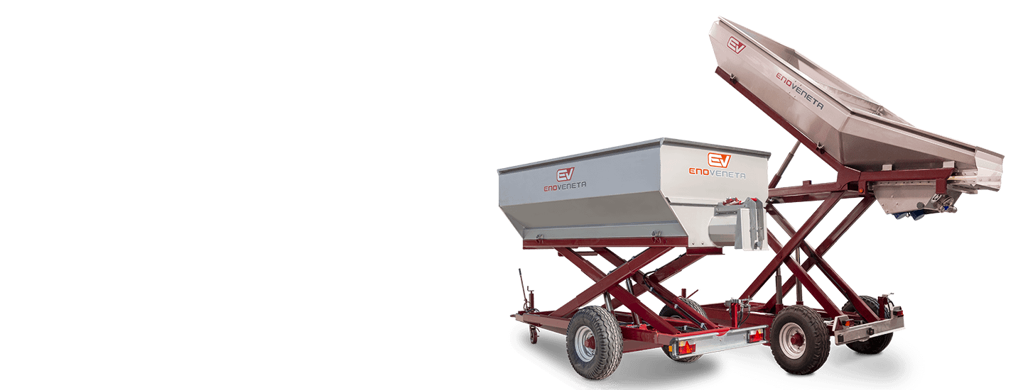 Rivoluziona la tua vendemmia con i nostri rimorchi in acciaio inox. Dotati di coclea di ampie dimensioni o scivolo con motori vibranti per un dosaggio preciso durante lo scarico dell’uva, i nostri rimorchi offrono massima efficienza e comodità. Risparmia tempo ed energia eliminando molta manodopera durante le fasi di scarico del prodotto.